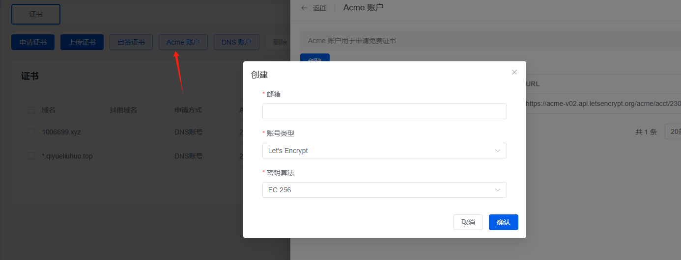 2.需要申请相关域名并在域名服务商处获取相关账号的登录秘钥在1pannel中维护