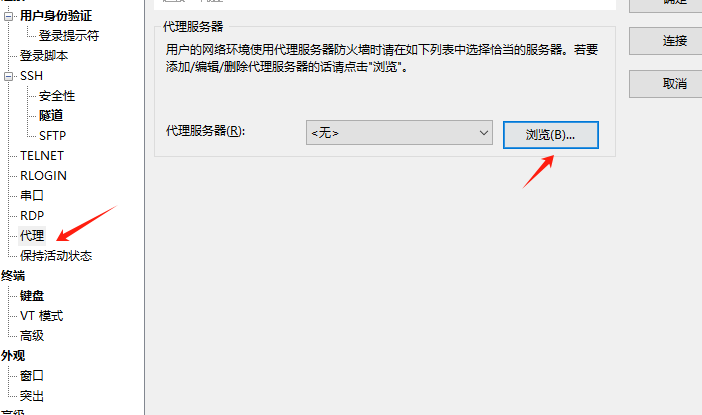 3.选择代理,点击浏览